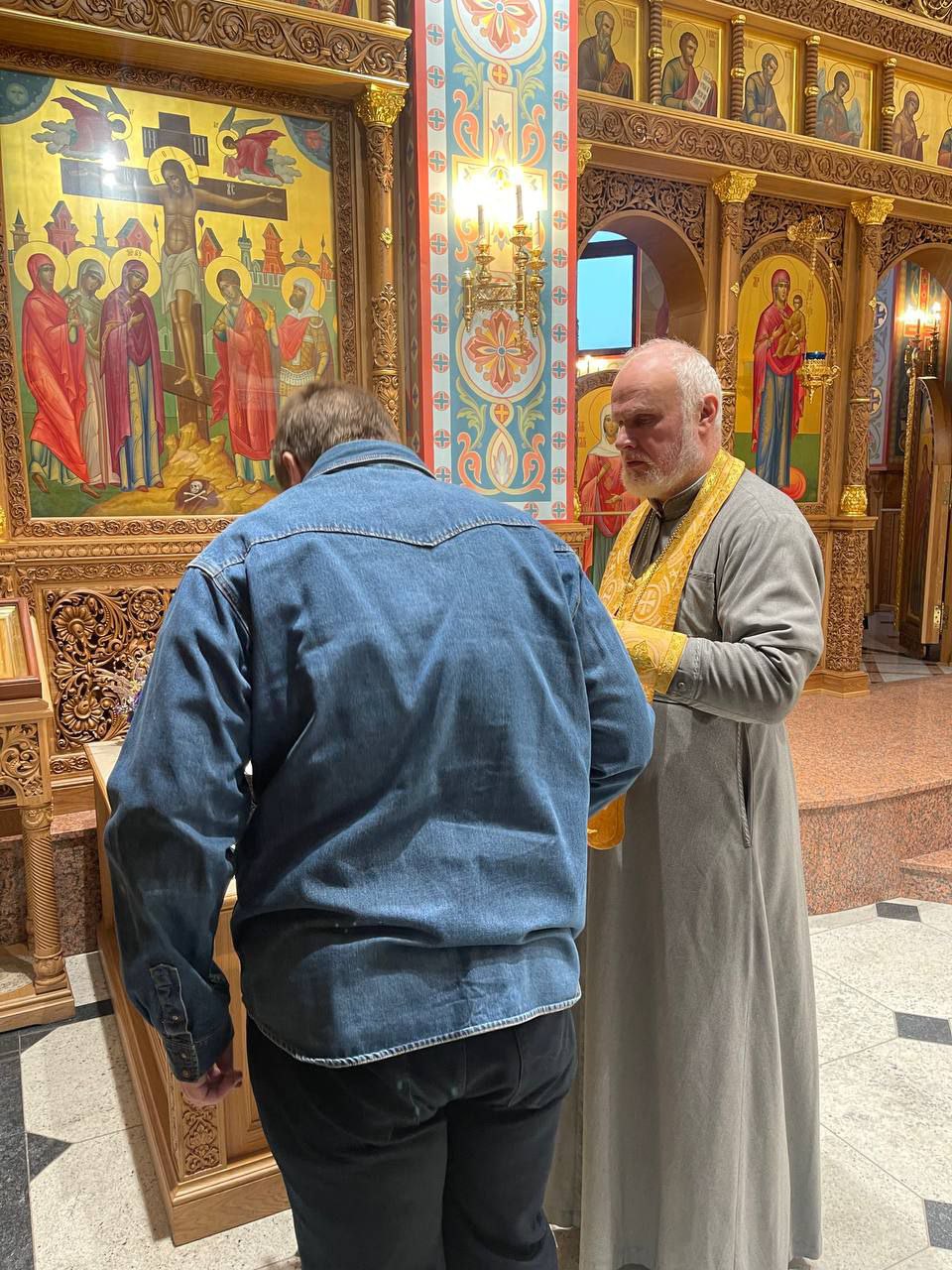 По завершении богослужения отец Алексий поздравил причастников с принятием Святых Христовых Таин и обратился к присутствующим со словами назидания и проповедью.