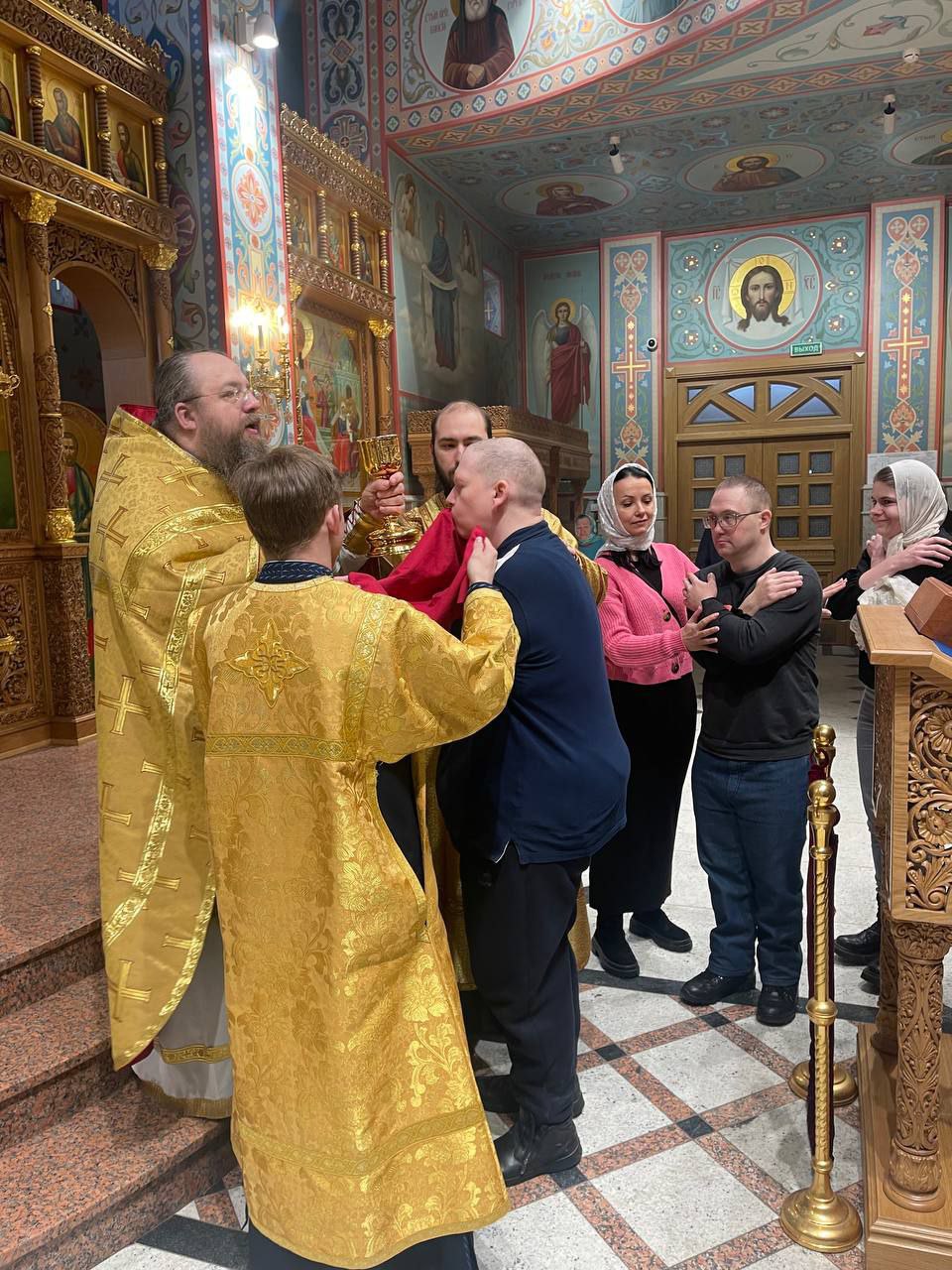 Все присутствующие молодые люди с инвалидностью исповедовались и удостоились причастия Святых Христовых Таин. Таинство Исповеди совершил клирик собора, протоиерей Игорь Гайдуков.