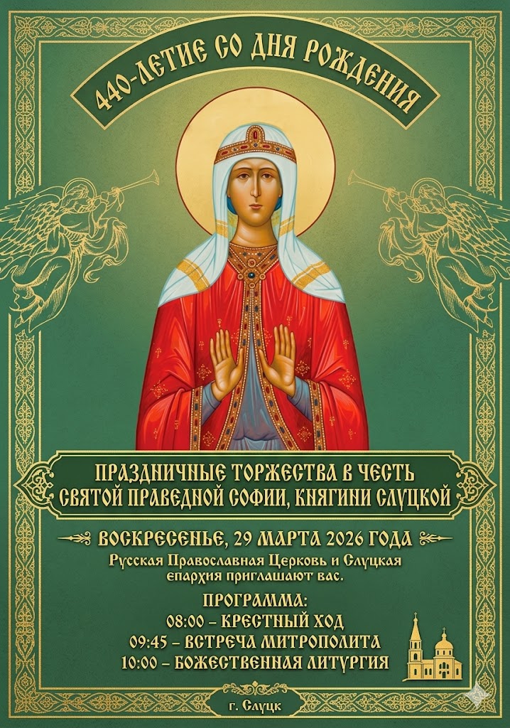 Ежегодно 1 апреля Русская Православная Церковь празднует память нашей великой соотечественницы, покровительницы города Слуцка – святой праведной Софии, княгини Слуцкой. В этом году отмечается 440-летие со дня рождения святой.