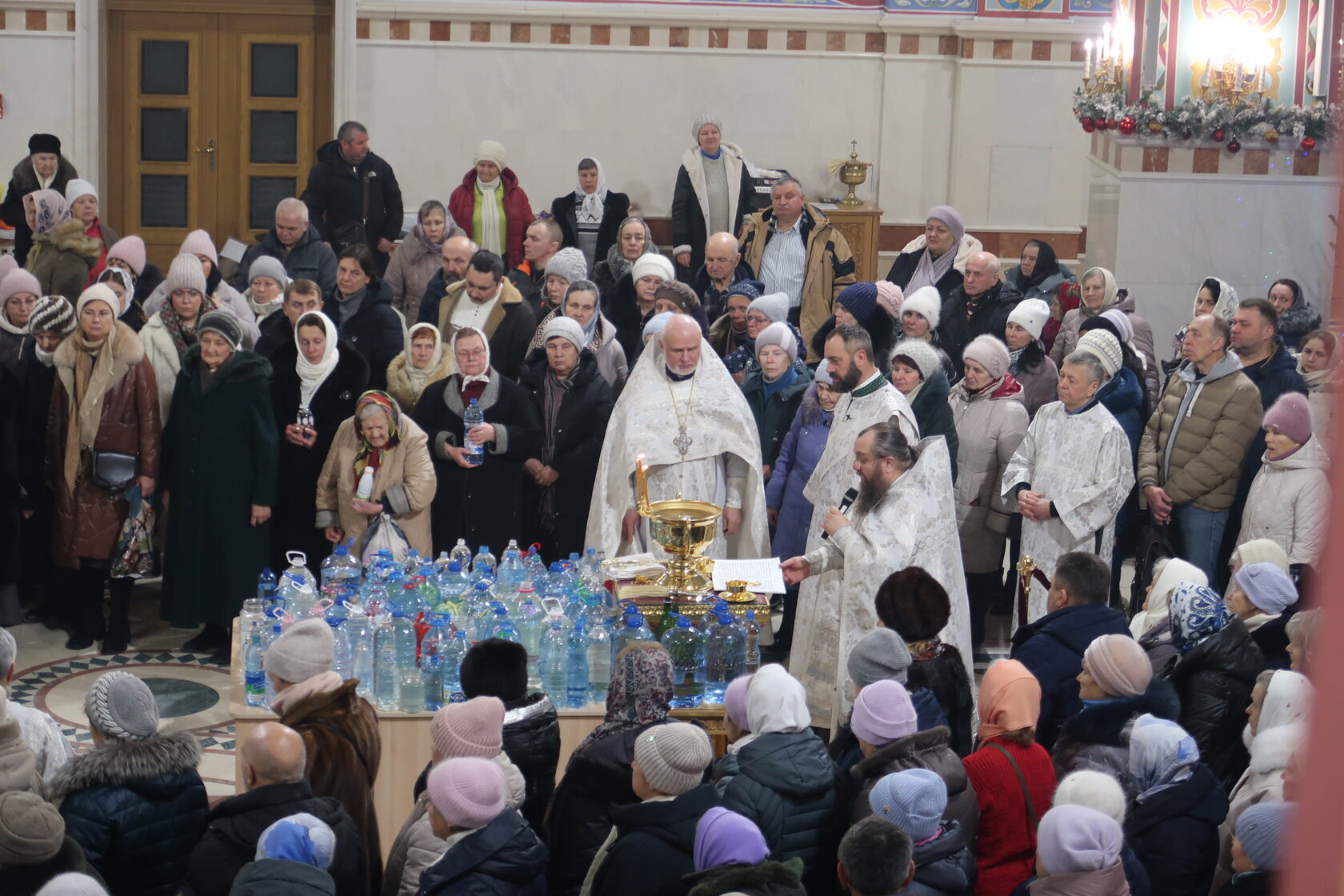На богослужении духовенство совершило чин Великого освящения воды, который Церковь именует «великая агиасма». Крещенская вода раздается верующим для молитвенного употребления и благословения домов и семей.