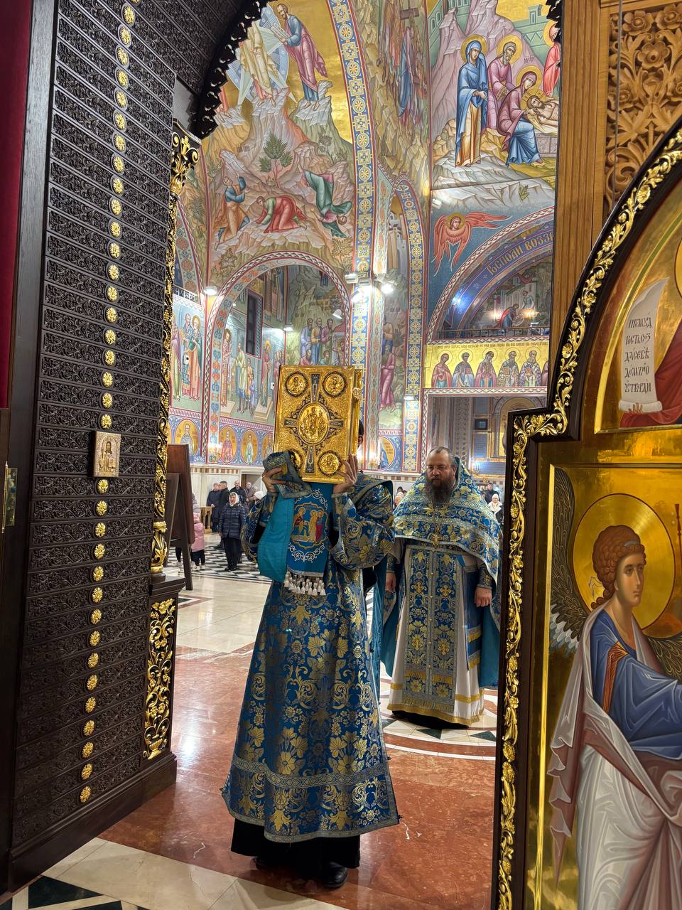 В кафедральном соборе Рождества Христова г. Солигорска 4 декабря совершено праздничное богослужение в православный праздник Введение во храм Пресвятой Богородицы. Этот праздник посвящён воспоминанию о том, как святые Иаоким и Анна привели трёхлетнюю Деву Марию в Иерусалимский Храм, посвящая Её жизнь Богу. Было совершено малая вечерня, всенощное бдение, часы и Божественная литургия с пением особых праздничных песнопений. Священнослужители облачены в белые и голубые одежды, символизирующие чистоту и небесную благодать.